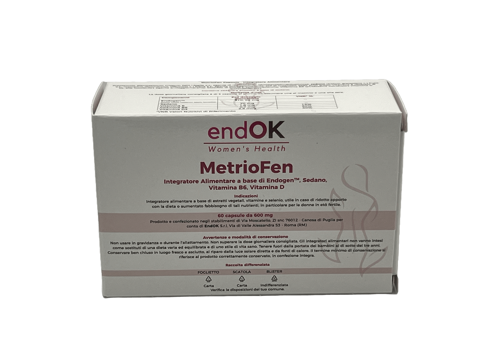 MetrioFen® è un prodotto ENDOK SRL, ispirato da un Brevetto per il trattamento dell’endometriosi, prodotto e confezionato in Italia. È stato formulato per le donne in età fertile che cercano una soluzione formulata appositamente per il loro benessere, adatta anche all’uso prolungato ove indicato.