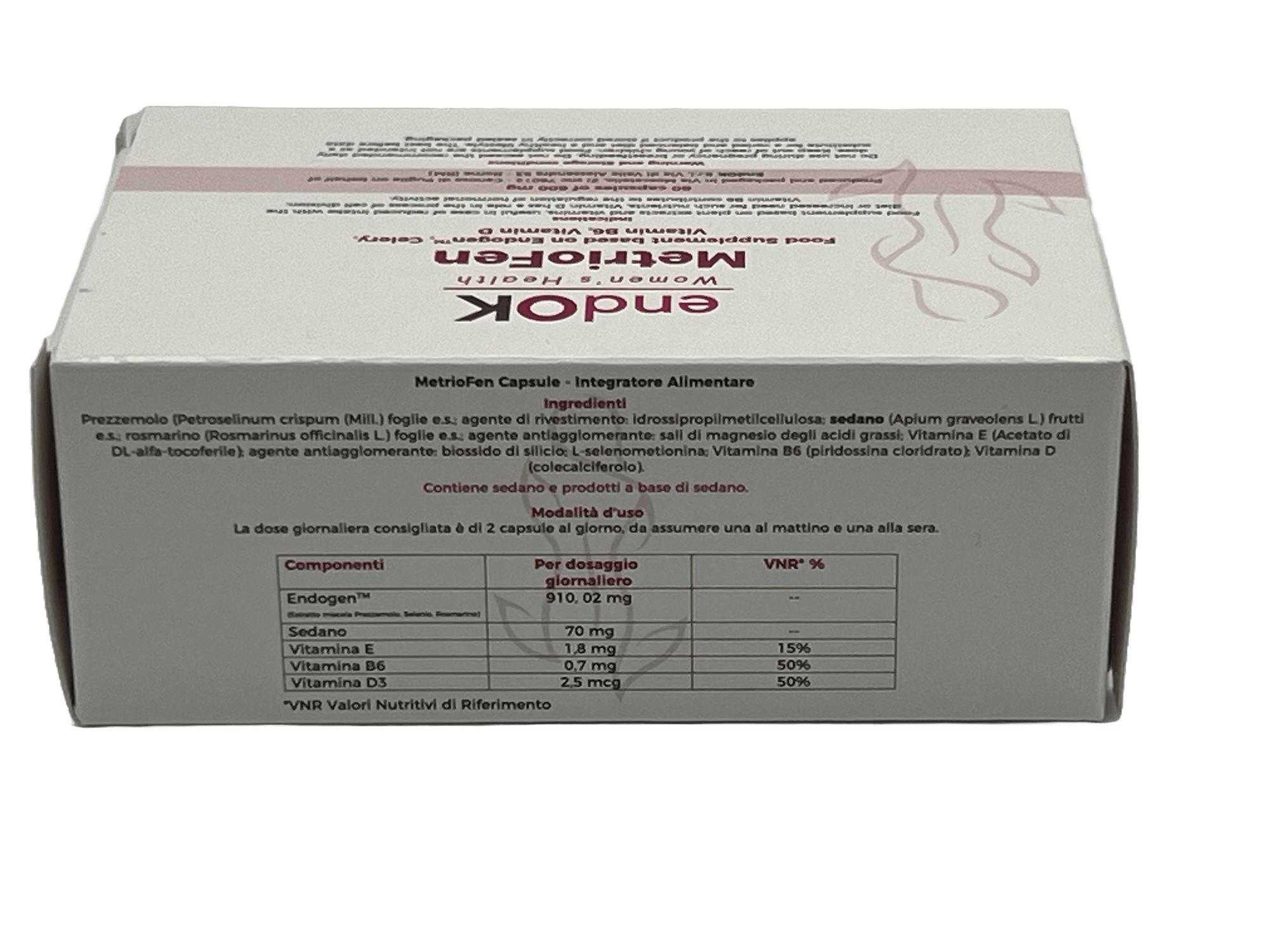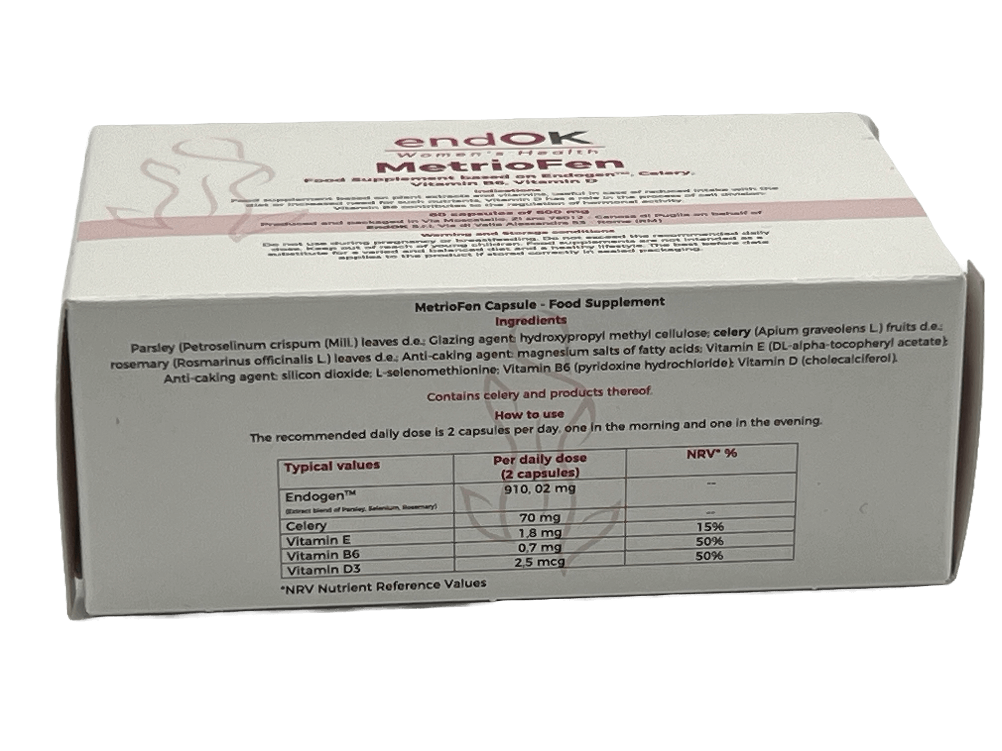 MetrioFen® è un prodotto ENDOK SRL, ispirato da un Brevetto per il trattamento dell’endometriosi, prodotto e confezionato in Italia. È stato formulato per le donne in età fertile che cercano una soluzione formulata appositamente per il loro benessere, adatta anche all’uso prolungato ove indicato.